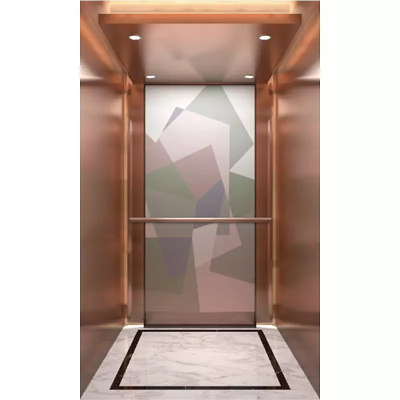 Bilvæggen: Kunstnerisk glas med skjulte lyslister, rosaguld mønstret rustfrit stål rose
