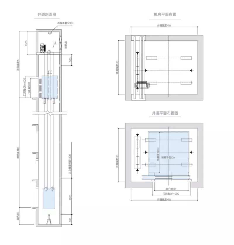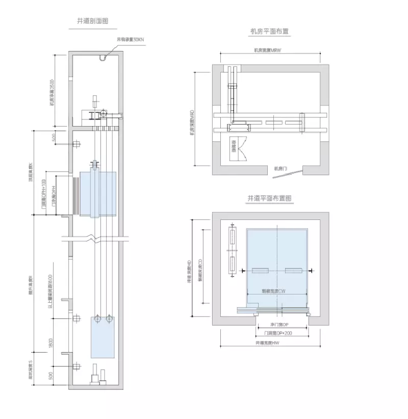 ដ្យាក្រាមវិស្វកម្មសំណង់ស៊ីវិលរបស់ម៉ាស៊ីន-បន្ទប់-ជណ្តើរយន្តដឹកទំនិញតិច (៤:១)
