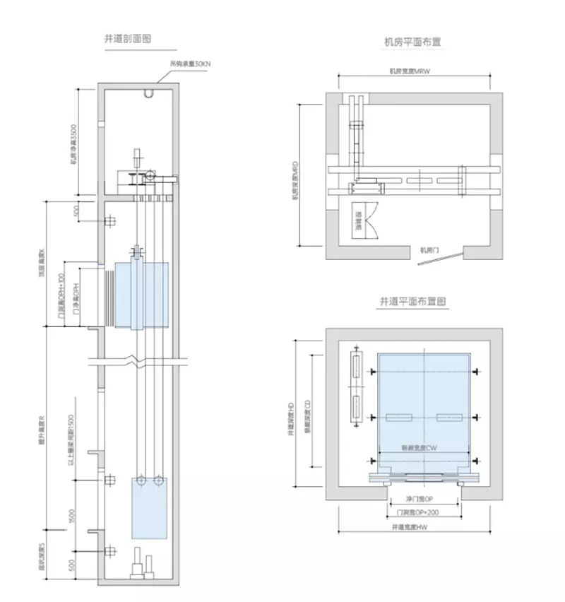 Civil engineering schematic diagram of the machine-room-less freight elevator (4:1)