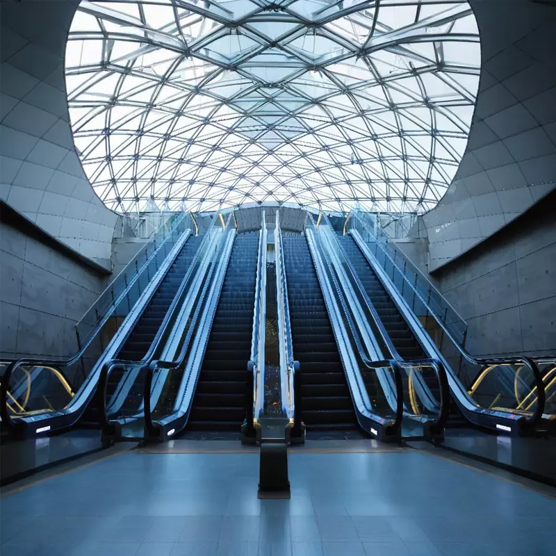 Moving wak:It shortens the size of moving walk and enhances the space utlization rate of the building through guide-ra pre-instalationtechnology, mechanical system, compact design of handral drive system. At the same time of solving the distribution of passenger low, talso ofers long-distance fiat transport. it is greatly convenient for people’s outing and shopping. it is first-choice solution plan for publictrafic & transport occasions such as various larae-scale supermarkets, public building, airport, exhibition center, transpor change-overstation etc.
