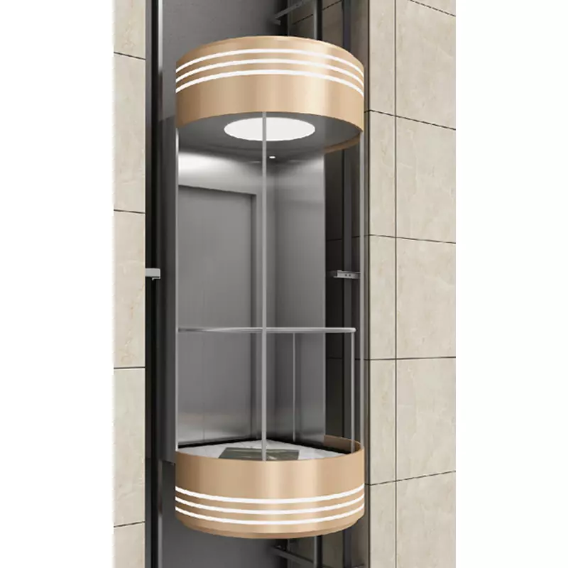 The car wall: Hair-textured stainless steel, safety tempered laminated sightseeing glass
