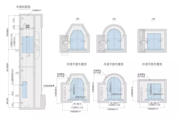 Civil engineering schematic diagram of the machine-room-less sightseeing elevator