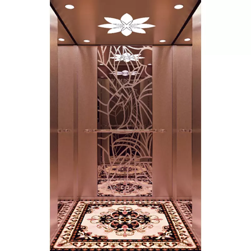 The car wall: Rose gold textured stainless steel, titanium gold mirror-finish stainless steel etched