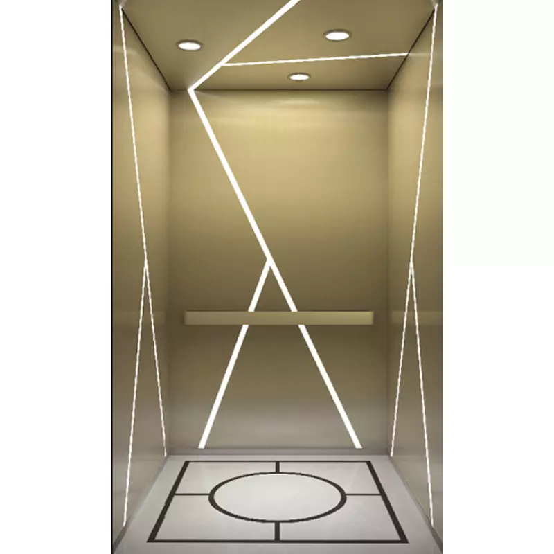 The car wall: Champagne blonde textured stainless steel, LED light strips